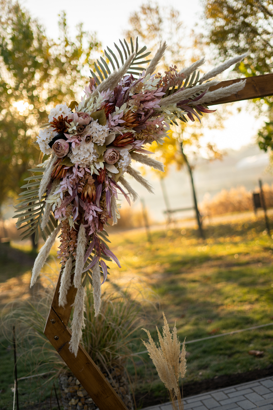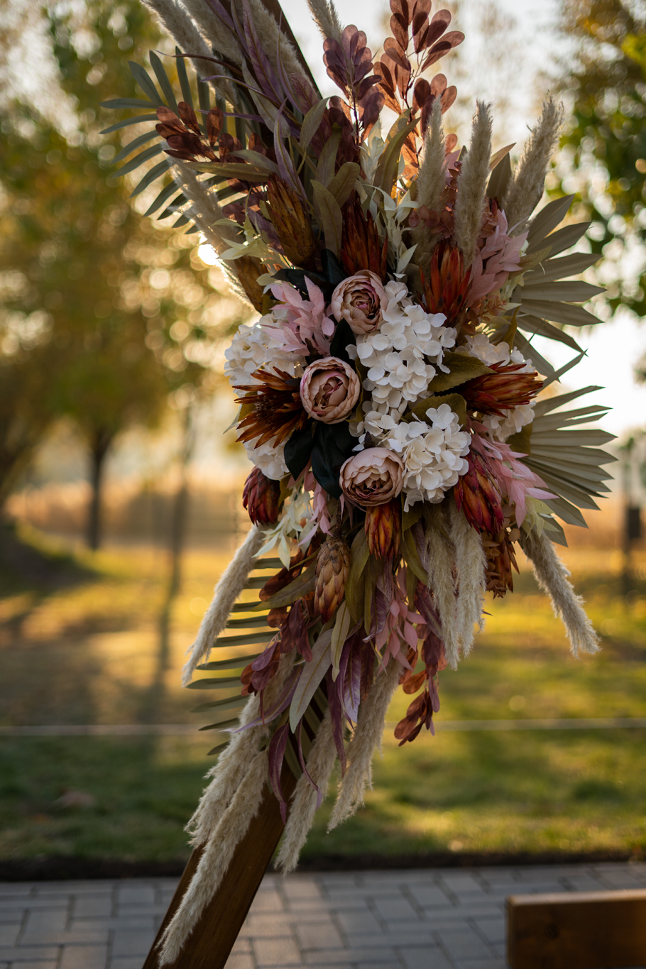 A virágdíszek prémium minőségű művirágból és szárazvirágból készülnek!
